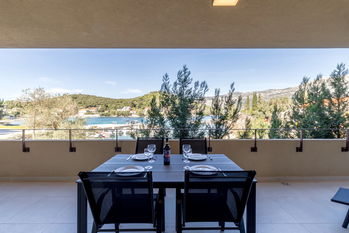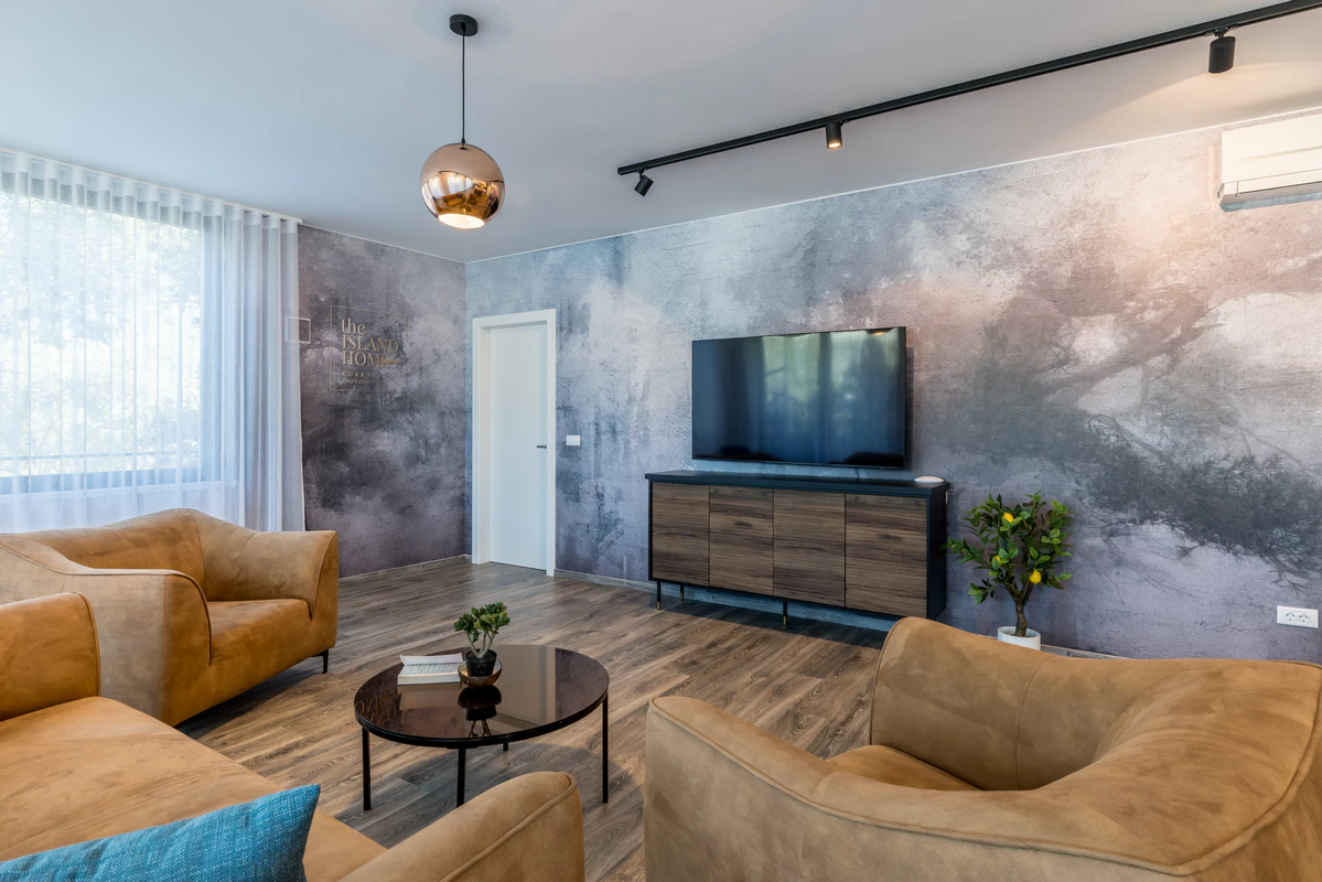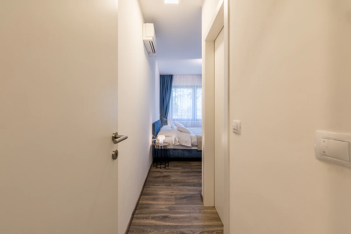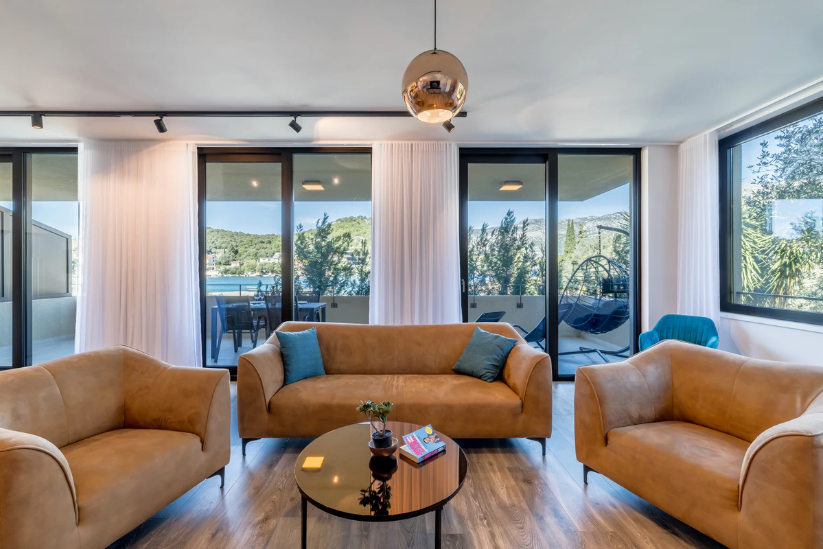 Dieses Apartment mit zwei Schlafzimmern (105 m²) verfügt über ein Kingsize-Bett (200 x 200), eine Klimaanlage und ein eigenes Bad mit begehbarer Dusche in jedem Schlafzimmer. Das Wohnzimmer mit großen Fenstern und Meerblick ist mit Kabelfernsehen, WLAN und Klimaanlage ausgestattet und verfügt über ein Sofa, auf dem auf Anfrage eine fünfte Person (Kind) untergebracht werden kann.