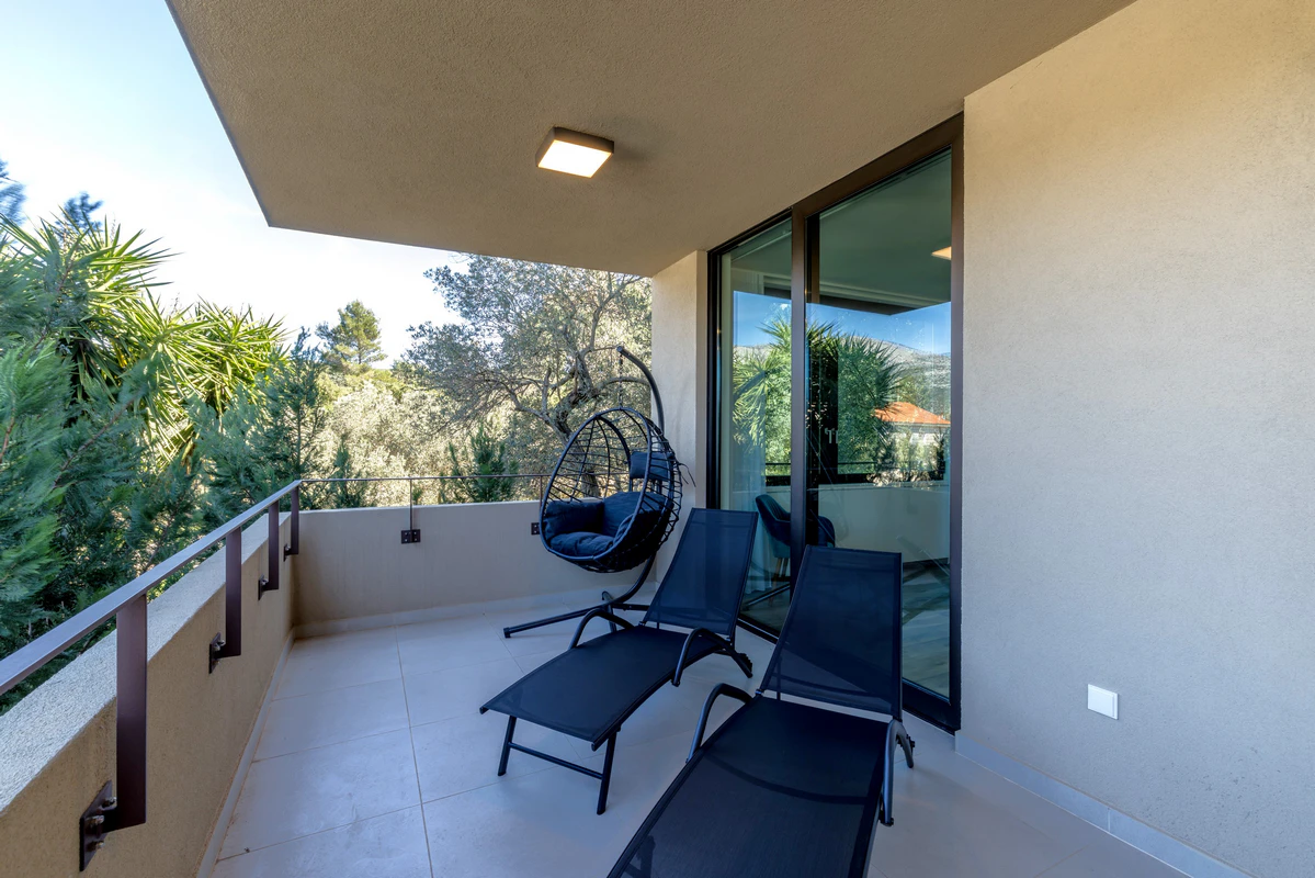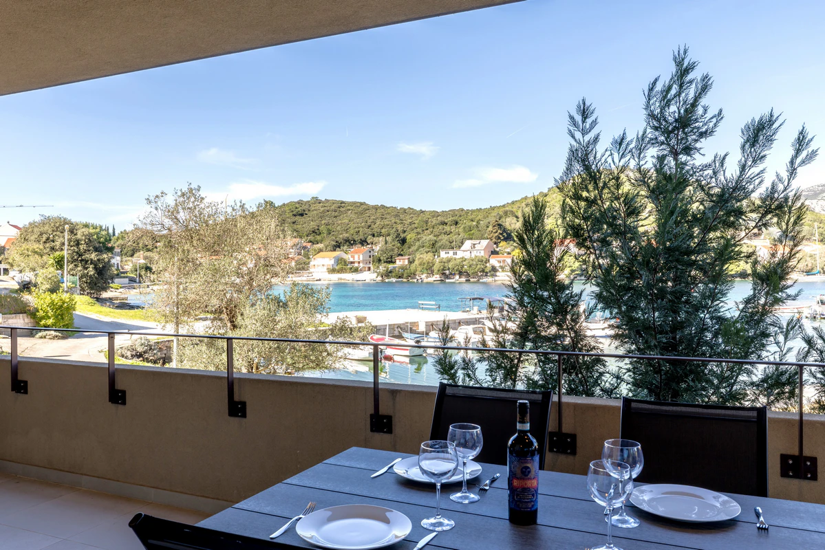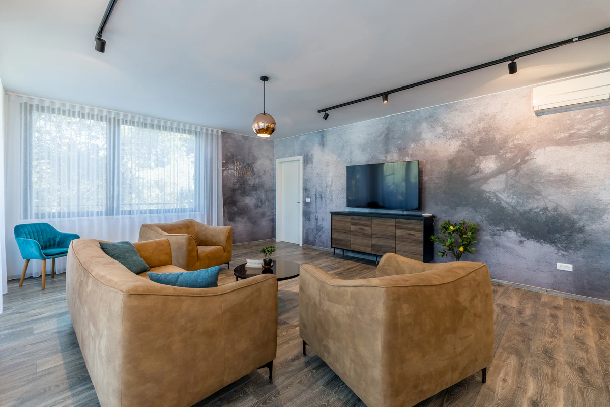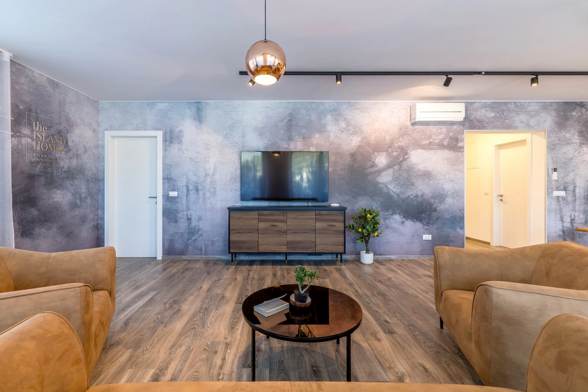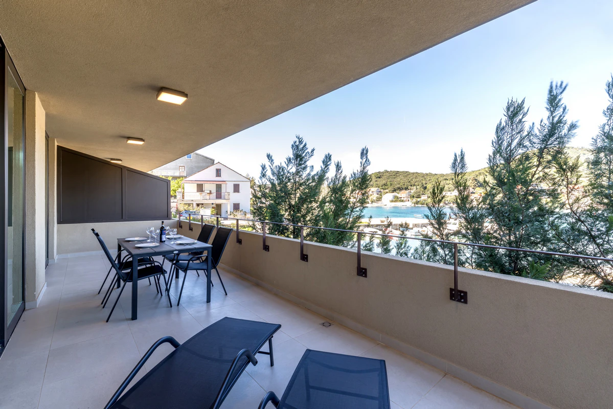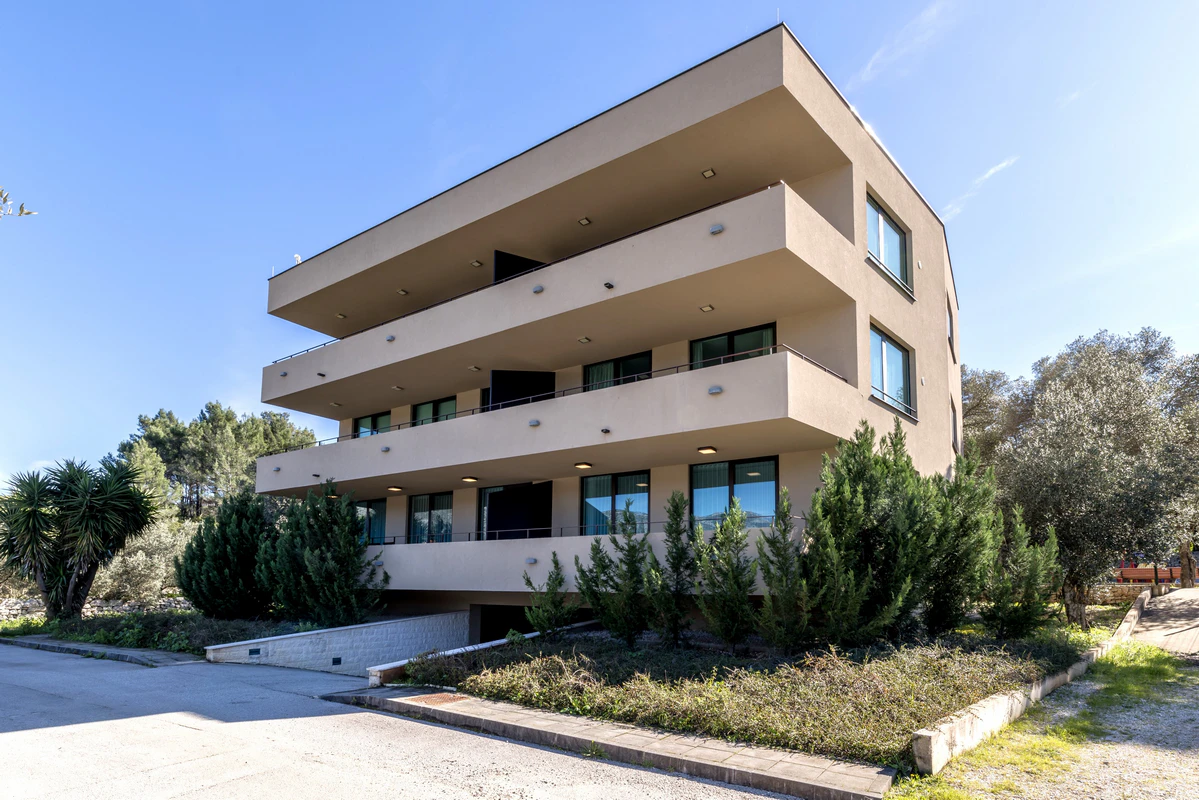 Lussuoso appartamento con due camere da letto (100 m²) dotato di letto king-size (200×200), aria condizionata e bagno privato con doccia walk-in in ogni camera da letto. Il soggiorno con ampie finestre affacciate sul mare è dotato di TV via cavo, WiFi e aria condizionata, con un divano che può ospitare una quinta persona (bambino) su richiesta.