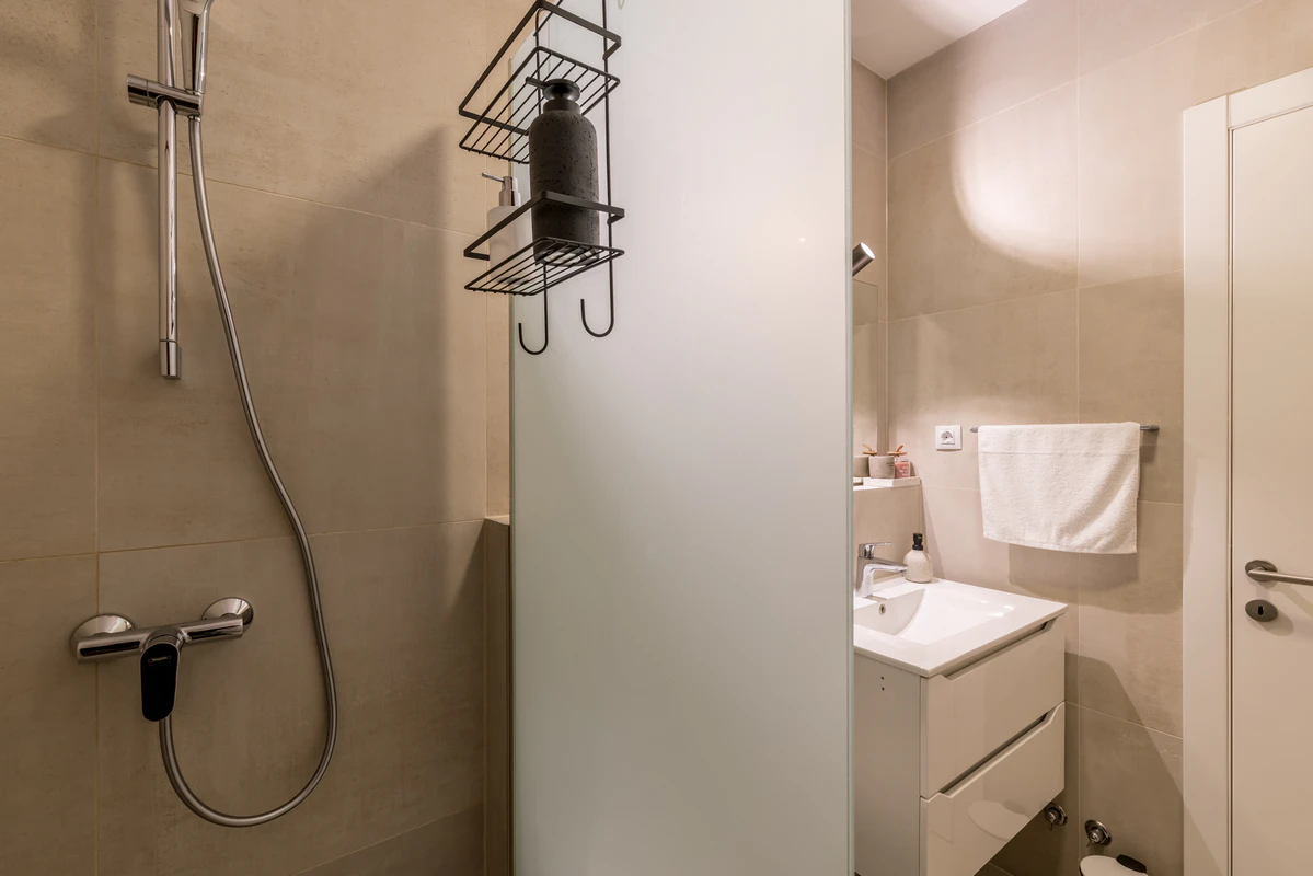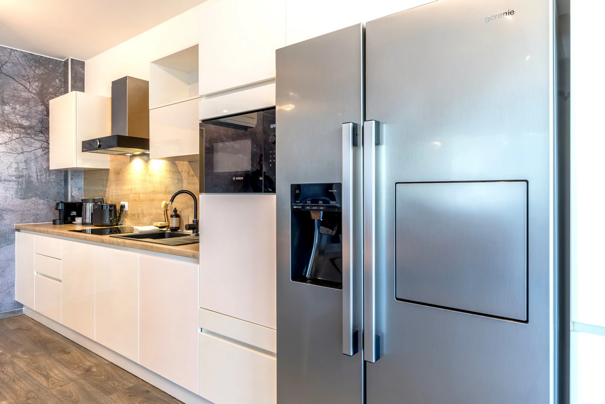 La cucina è completamente attrezzata con piano cottura a induzione, lavastoviglie, frigorifero, forno a microonde, macchina da caffè Segafredo, bollitore, tostapane e tutte le posate e gli utensili necessari per preparare i vostri piatti preferiti. Per una maggiore comodità, l’appartamento dispone di un ripostiglio con lavatrice/asciugatrice, aspirapolvere Dyson, ferro da stiro e asciugacapelli.